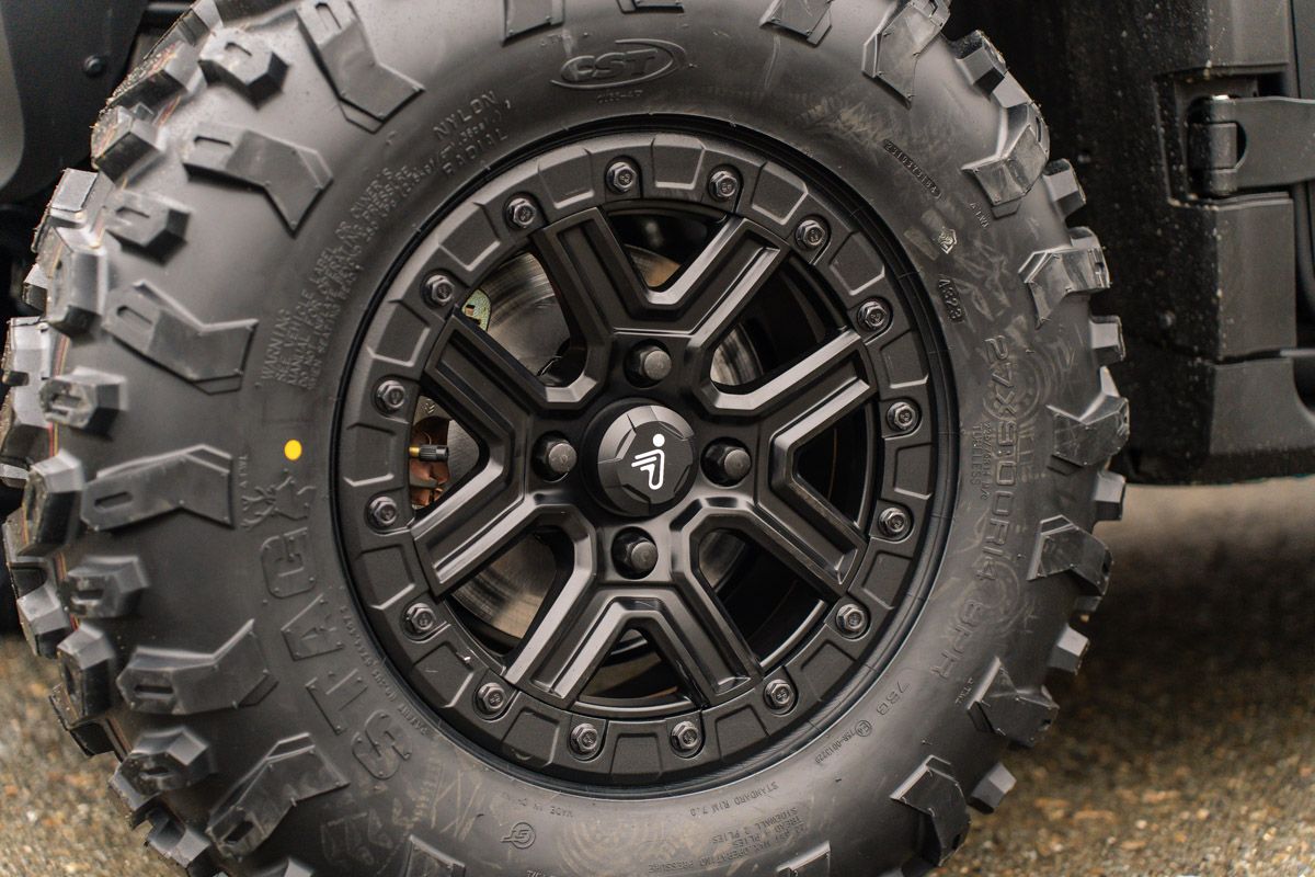 | Anvelope | Anvelope față: 27 x 9-14 Anvelope spate: 27 x 11-14 |